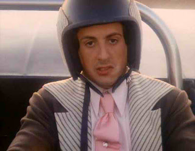 Si Frankenstein es el protagonista, Joe “Metralleta” Viterbo es el antagonista, un gangster de Chicago interpretado por Sylvester Stallone un año antes de que triunfara en los Oscars con Rocky. Este papel le viene como anillo al dedo; Joe es malo, tonto, cafre y pega a las mujeres. Sus méritos para ganar la carrera son atropellar a su propio equipo después de una parada en boxes.